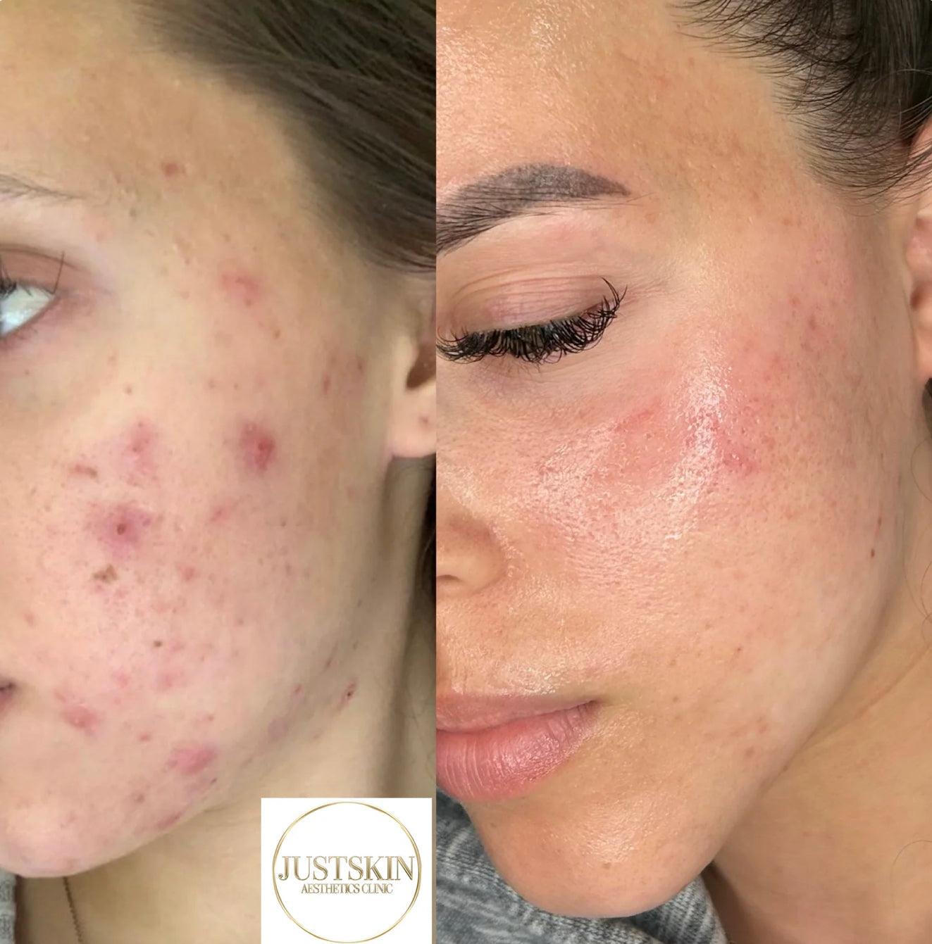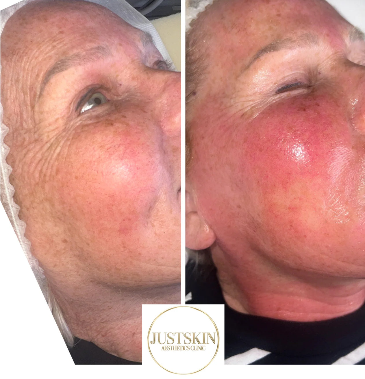 It stimulates the skin’s natural healing process, which increases collagen and elastin production for firmer, smoother skin.